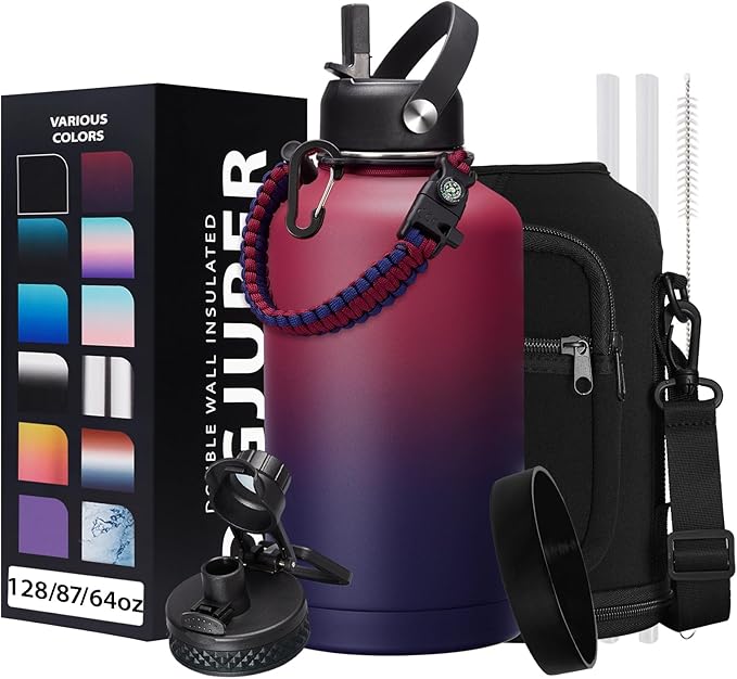 - SUPERIOR QUALITY & GREAT GIFT: 100% BPA-free & food-grade stainless steel, make the half gallon insulated water bottles never leave a metal taste or rust. The powder coat keeps it from slipping and does not allow the bottle to sweat. Brilliant color bring out the bottle with a touch of youthful vibe, perfect present for your lovers, family and friends.