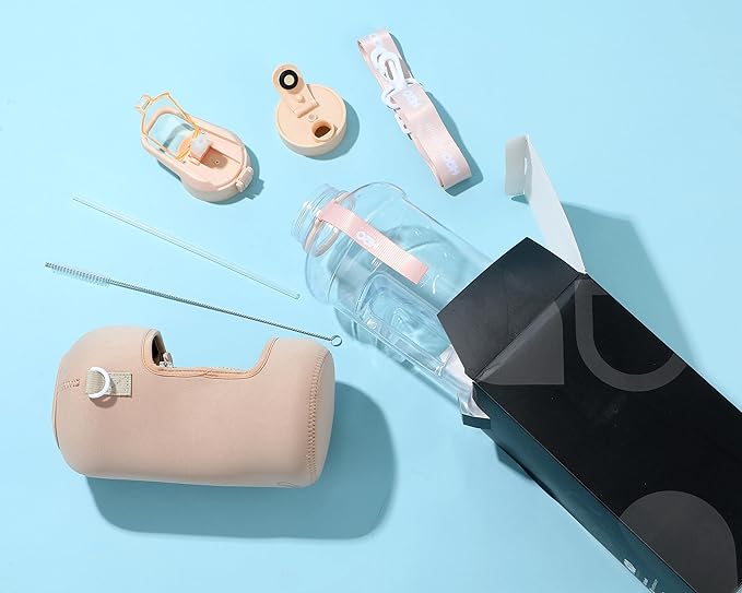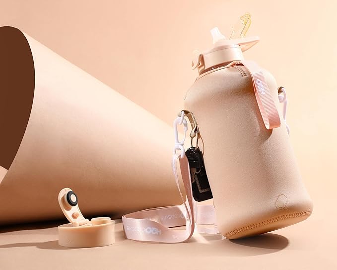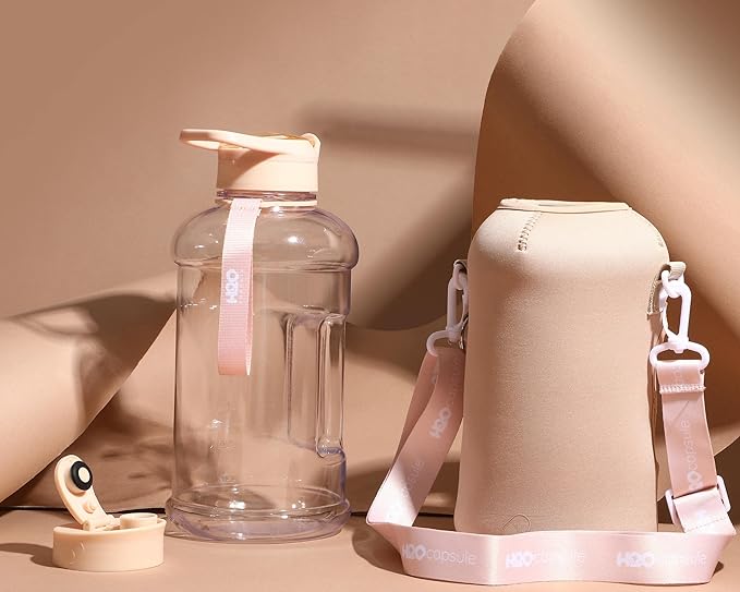 - HALF GALLON HYDRATION WITH COVERED STRAW LID: The extra large 2.2L / 74 oz plastic jug holds all the water you need to stay hydrated while you exercise. The reusable half gallon flask comes with a leak-proof & dust-proof covered straw lid, which helps protect the mouthpiece and flips open with a click of a button. The straw-lid is air-sealed: Run straw brush through mouth piece before initial use. The H2O Capsule bottle with storage sleeve comes with a bonus straw cleaning brush.