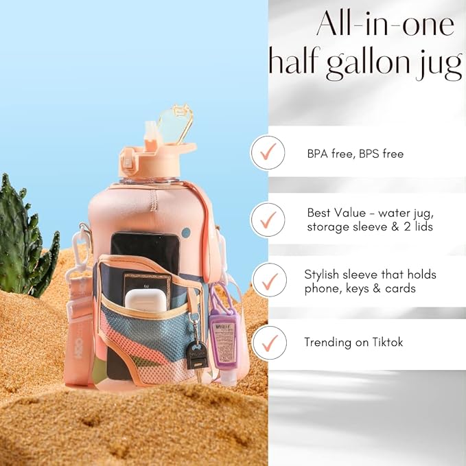 - HALF GALLON HYDRATION WITH REMOVABLE STRAW: The extra large 2.2L / 74 oz hydro jug holds all the water you need to stay hydrated while exercising. The reusable jug has a 2.25” wide mouth perfect for ice cubes, and removable straw for easy drinking.