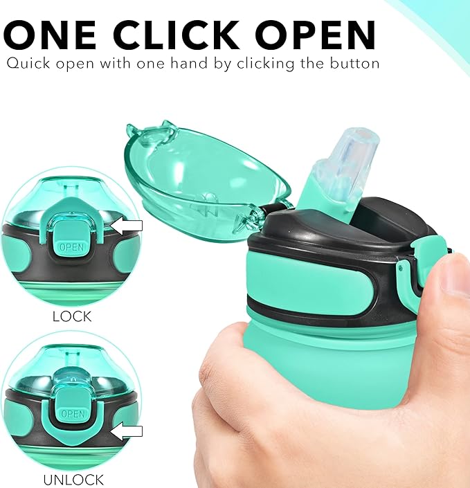 - 【Humanized Design】Open with one hand by clicking the button to access water. Highly suitable for boys and girls, and all ages. The flip-top lid is used a secure lock, making it dust-free and leak-proof. The frosted texture of the water bottle allows you to hold it better.