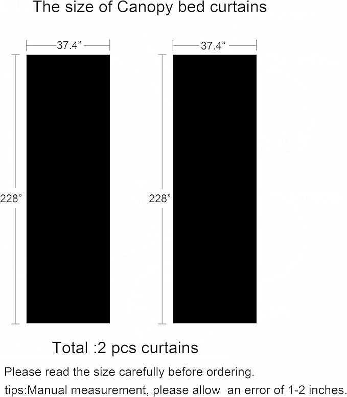 - Package list: Sold as 2 Caopies Bed Curtains Panel(Not include bed frame/poles),you need to buy and make it yourself.