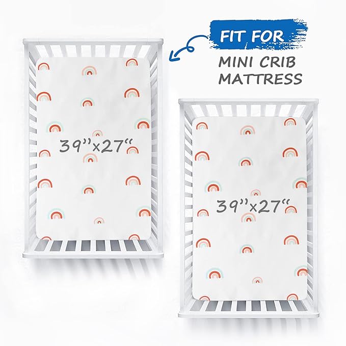 Pack n Play Sheets 2 Pack (27"x 39"x 5") Rainbow Mini Crib Sheets for Baby Girls Boys, Portable Playard Sheet, Ultra Soft Microfiber Pack n Play Mattress Sheet Cover