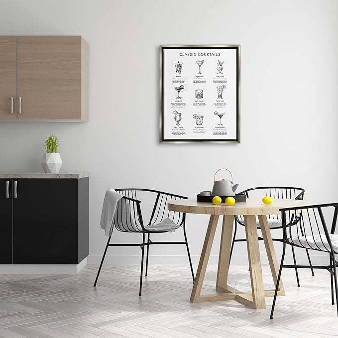 Stupell Industries Classic Cocktails Mixed Drinks Kitchen Bar Sign Chart, Design by Lettered and Lined