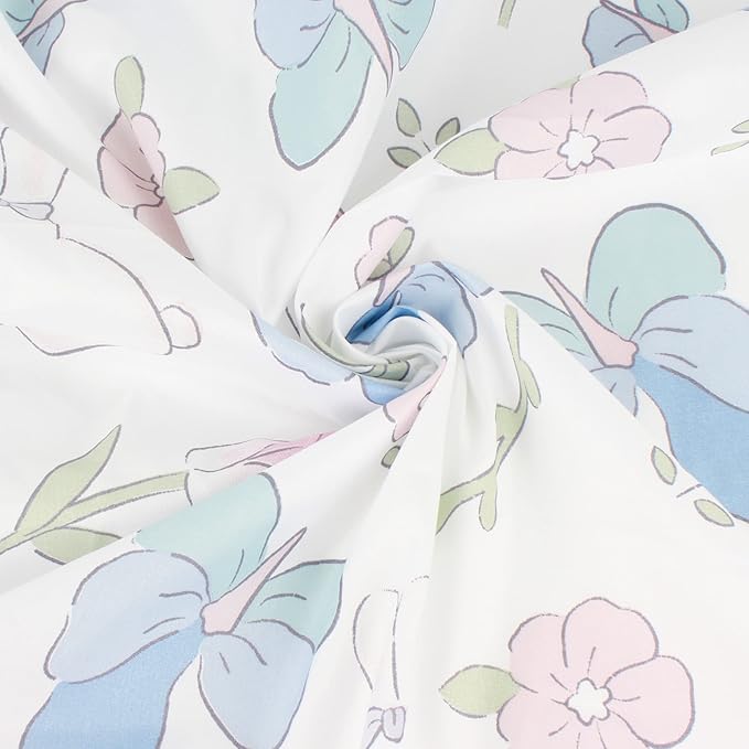 - Material: Inner layer is polyester cloth with cute printing, outer layer is beautiful soft white gauze. Cloth is of medium thickness, can black out approx 50% lights. Not too flimsy or not too thick, soft, breathable, and durable