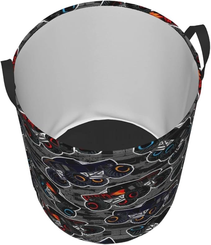 Monster Truck Boys Style Round Laundry Hamper Storage Basket Toys Clothes Organizer Bin For Home Bathroom Bedroom Dorm Nursery, 38l