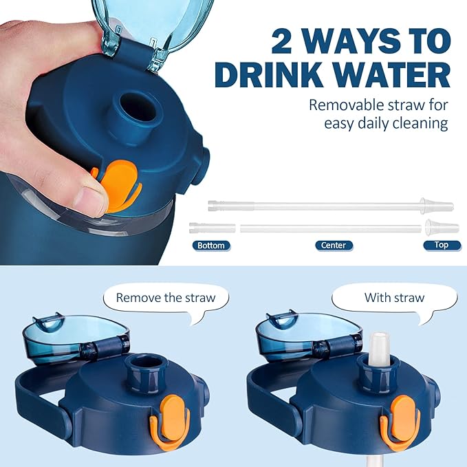 - ❤Glass Water Bottle with Pop-up Straw Lid- Our 64oz water bottle with straw is designed with an upgraded lid that ensures 100% leakproof and dustproof. Advanced one-click button makes you drink easier, just push the button and the straw will pop out automatically.