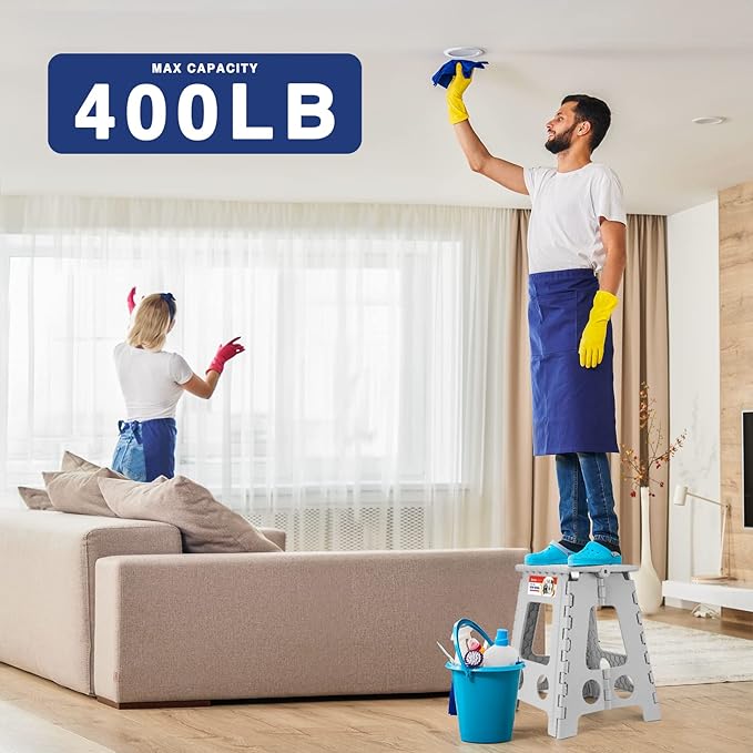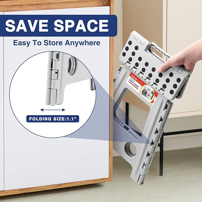 ACSTEP Folding Step Stool 16 Inch Stool Heavy Duty Plastic Foldable Step Stools for Adults and Kids, Stepping Stool with Handle, Folding Stool Suitable for Kitchen Hold Up to 400lbs (Grey 1PC)
