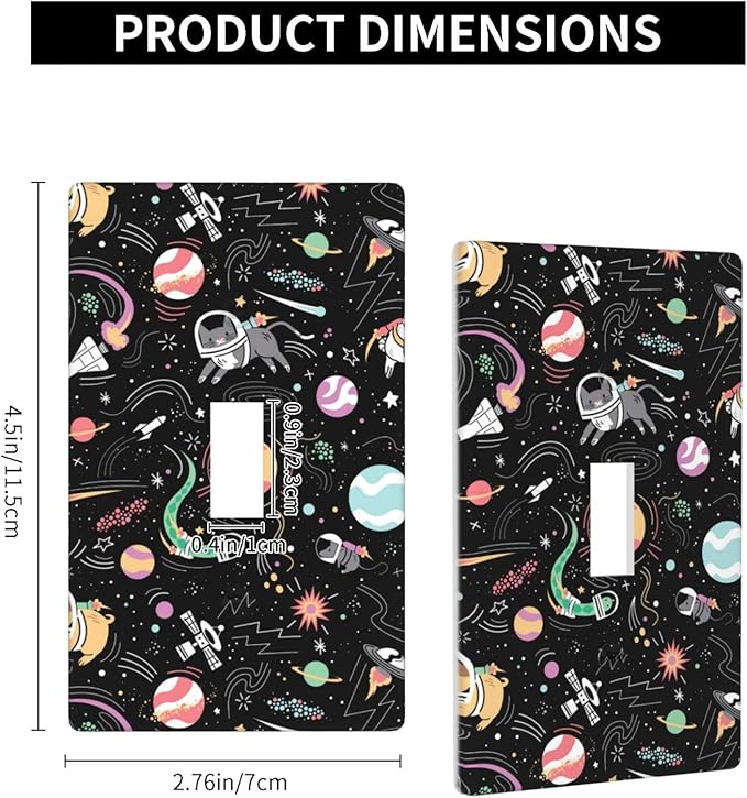 Space Cute Cat Dog Decorative Light Switch Cover Wall Plate 1 Toggle Single One Gang for Kitchen Kids Boys Room Bedroom Bathroom Home Novelty Decorate