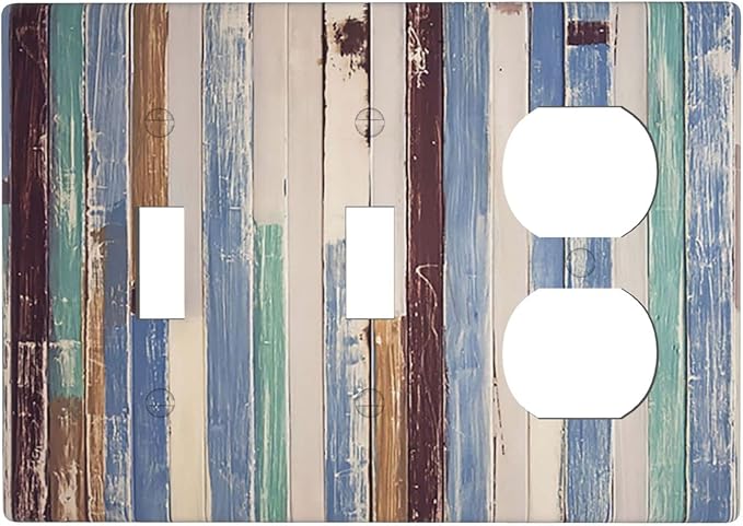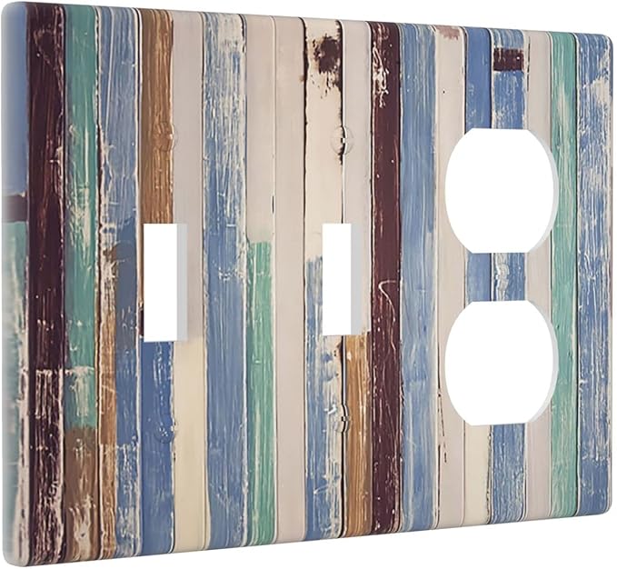 Vintage Wood Texture Farmhouse Decorative Combo 2 Toggle Duplex Outlet Light Switch Cover Wall Plate 3 Gang for Electrical Kitchen Living Room Bedroom Bathroom Home Novelty Decorate
