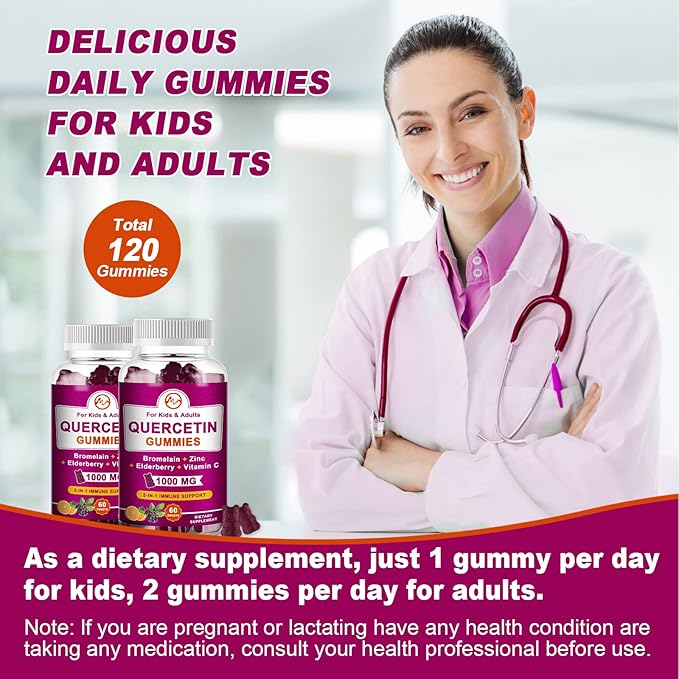 - Immune Support Quercetin Gummies for Adult & Kids: These quercetin gummies also include essential nutrients bromelain, vitamin C and zinc, giving you four times the action for immune support