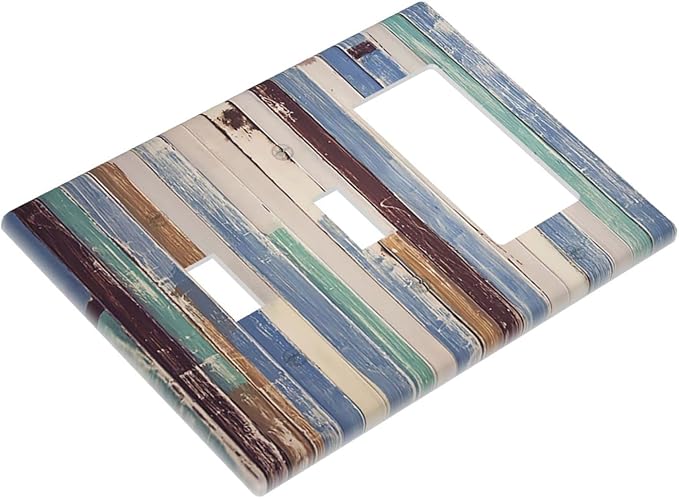 Vintage Wood Texture Farmhouse Decorative Combo 2 Toggle 1 Rocker Light Switch Cover Wall Plate Single Decora 3 Gang for Electrical Outlet Kitchen Living Room Bedroom Bathroom Home Novelty Decorate