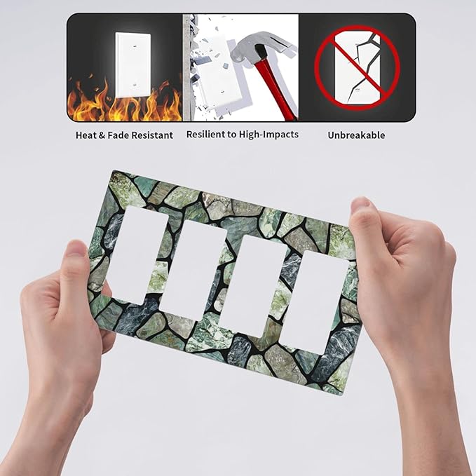 Green Stone Texture Quad Rocker Light Switch Wall Plate Cover Decorative 4-Gang for Outlet Room Bathroom Bedroom Home Kitchen Four Decora Receptacle Polycarbonate Power Gear 4.5" x 8"