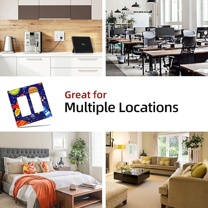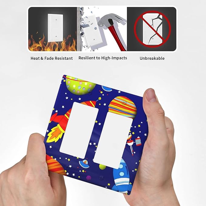 Space Astronaut Double Rocker Light Switch Wall Plate Cover Decorative 2-Gang for Outlet Boys Kids Room Bathroom Bedroom Home Kitchen Two Decora Receptacle Polycarbonate Power Gear 4.5" x 4.6"