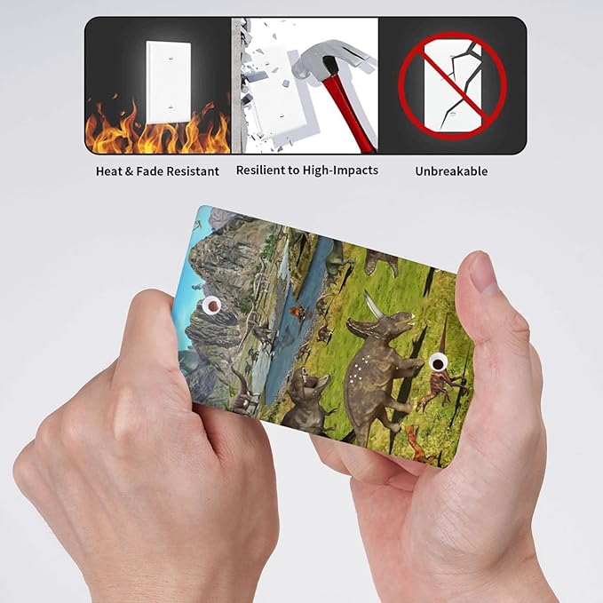 Cute Dinosaur Single Blank Switch Wall Plate Cover Outlets Decorative 1-Gang for Electrical Boys Kids Room Bathroom Bedroom Home Kitchen One Receptacle Polycarbonate Power Gear 4.5" x 2.76"