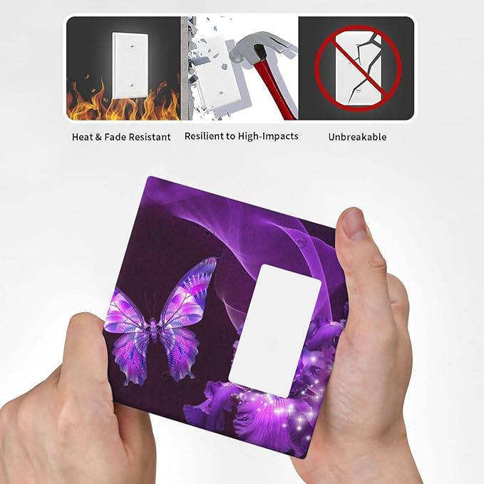 Purple Butterfly Flower Combo Single Blank 1 Rocker Light Switch Wall Plate Cover Decorative 2-Gang for Electrical Girls Room Bathroom Bedroom Home Kitchen One Decora Receptacle 4.5" x 4.6"