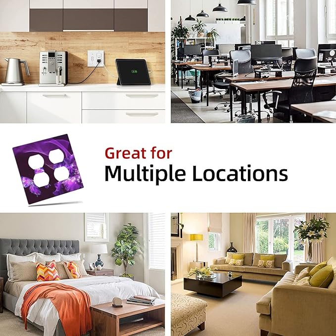 Purple Butterfly Flower Double Outlet Switch Wall Plate Cover Decorative 2-Gang for Electrical Girls Room Bathroom Bedroom Home Kitchen Two Receptacle Polycarbonate Power Gear 4.5" x 2.76"