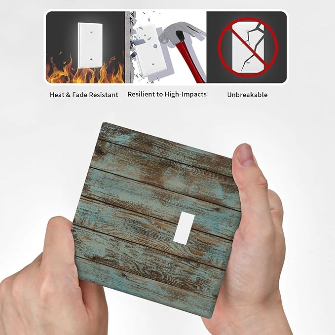 Vintage Green Wood Texture Combo Single Blank 1 Single Toggle Light Switch Wall Plate Cover Decorative 2-Gang for Electrical Room Bathroom Bedroom Home Kitchen One Receptacle 4.5" x 4.6"