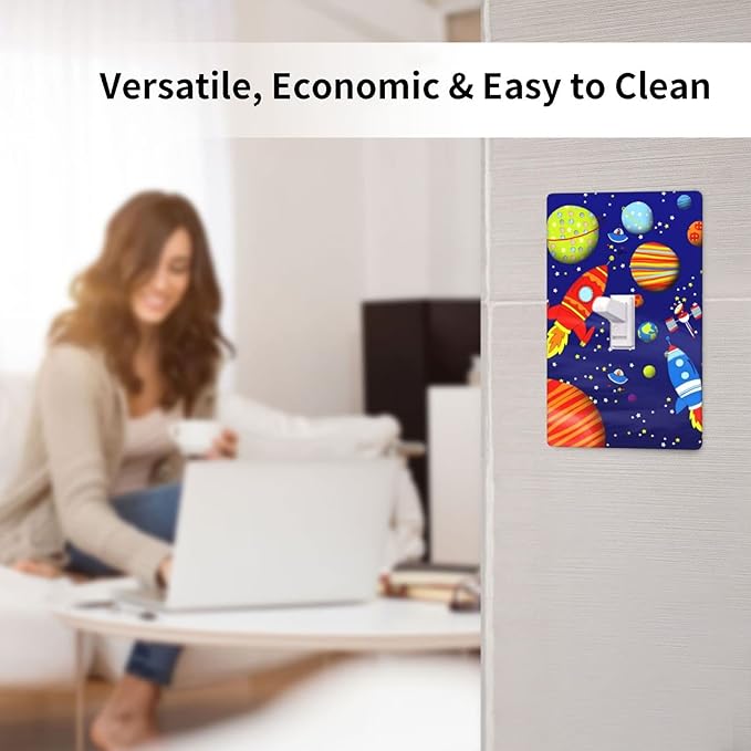 Space Astronaut Single Toggle Light Switch Wall Plate Cover Decorative 1-Gang for Boys Kids Room Bathroom Bedroom Home Kitchen One Lightswitch Polycarbonate 4.5" x 2.76"