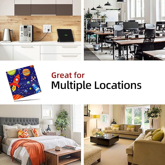 Space Astronaut Double Blank Switch Wall Plate Cover Outlets Decorative 2-Gang for Electrical Boys Kids Room Bathroom Bedroom Home Kitchen Two Receptacle Polycarbonate Power Gear 4.5" x 4.6"