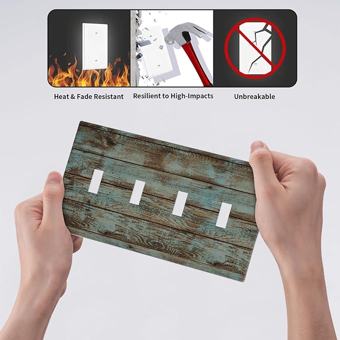 Vintage Green Wood Texture Quad Toggle Light Switch Wall Plate Cover Decorative 4-Gang for Room Bathroom Bedroom Home Kitchen Four Lightswitch Polycarbonate 4.5" x 8"
