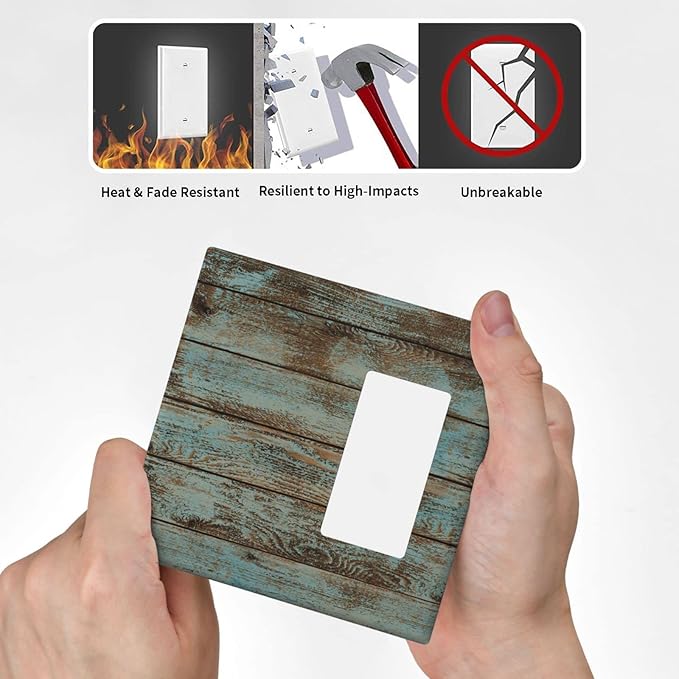 Vintage Green Wood Texture Combo Single Blank 1 Rocker Light Switch Wall Plate Cover Decorative 2-Gang for Electrical Room Bathroom Bedroom Home Kitchen One Decora Receptacle 4.5" x 4.6"