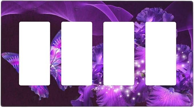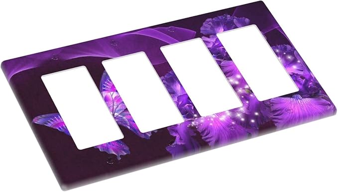 Purple Butterfly Flower Quad Rocker Light Switch Wall Plate Cover Decorative 4-Gang for Outlet Girls Room Bathroom Bedroom Home Kitchen Four Decora Receptacle Polycarbonate Power Gear 4.5" x 8"