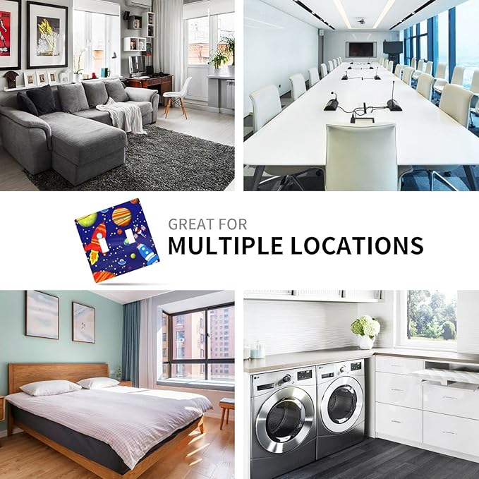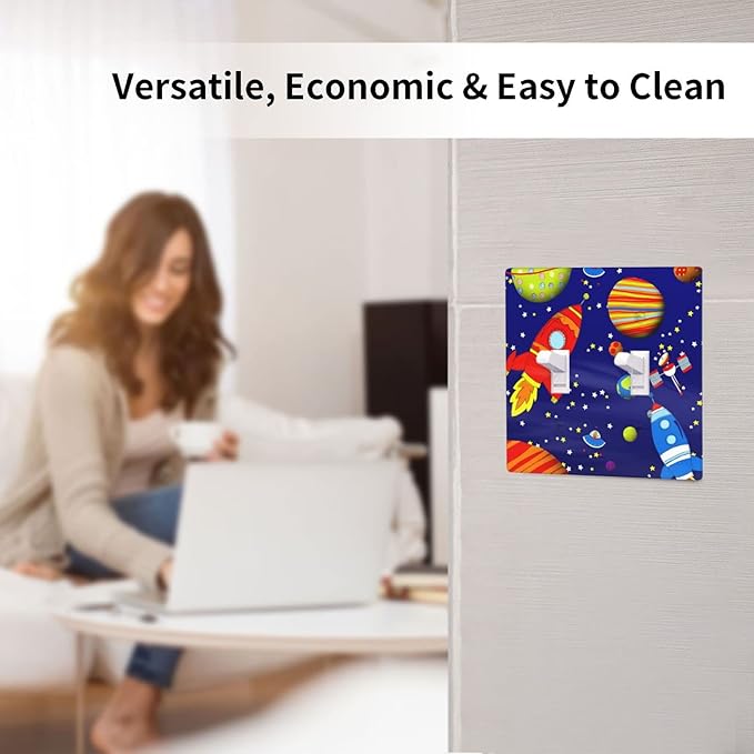 Space Astronaut Double Toggle Light Switch Wall Plate Cover Decorative 2-Gang for Boys Kids Room Bathroom Bedroom Home Kitchen Two Lightswitch Polycarbonate 4.5" x 4.6"