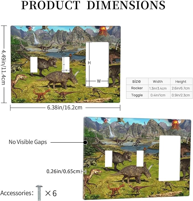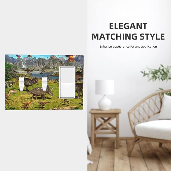 Cute Dinosaur Combo 2 Toggle 1 Rocker Light Switch Wall Plate Cover Decorative 3-Gang for Electrical Outlets Boys Kids Room Bathroom Bedroom Home Kitchen One Decora Receptacle 4.5" x 6.38"