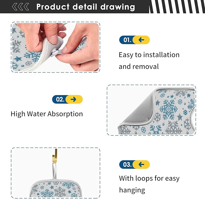 - Easy TO CLEAN & USE: 100% Machine Washable & Dryable for hassle free maintenance. New Snap Button Feature, Secure your mat to the faucet base.