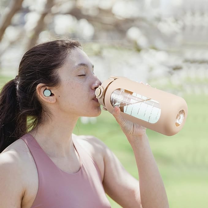 - Glass Water Bottles With Time Marker : The motivational glass water bottles with straw holds 42-64 oz water that is equivalent to 8 cups of water that suggest by scientists for human drink per day, allows you not to refill it frequently anymore. With unique inspiration quotes & time marker & capacity scale, the 64 oz water bottle with carry handle is great for measuring your daily intake of water, helps you stay hydrated and drink enough all day
