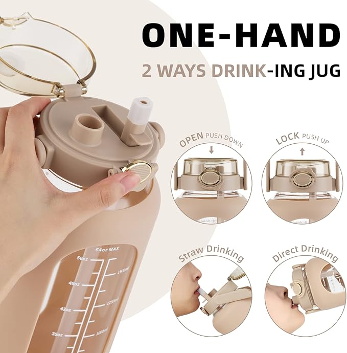 - More Function :The water jug with straw is designed with high-quality silicone sleeve to protect water bottle from slight bumps. In order to make the half-gallon(2 liters) big gym motivational water bottle easy to carry we have equipped it with handle. Wide-mouth opening make it easy to fill with ice cubes & fruits and daily clean