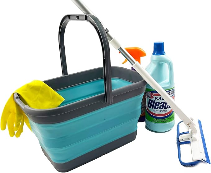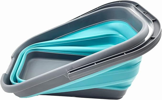 SAMMART 12L (3.1 Gallon) Collapsible Rectangular Handy Bucket/Multiuse Foldable Water Pail for Camping, Fishing (Grey/Crystal Blue)