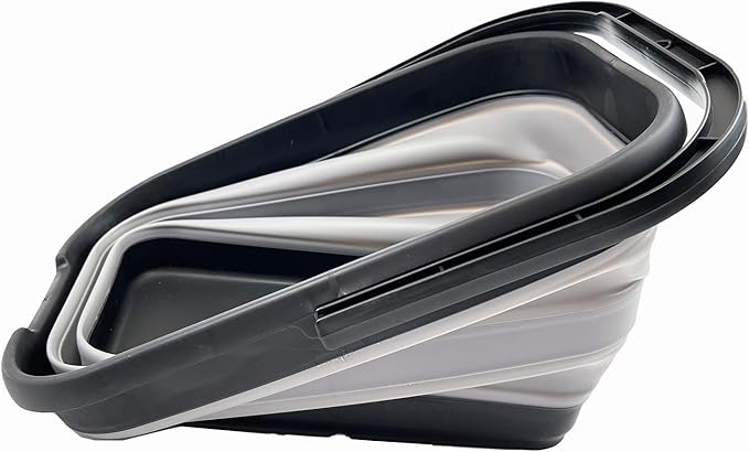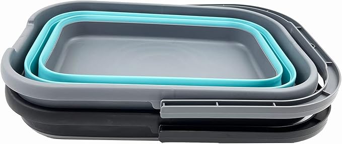 SAMMART 12L (3.1 gallon) Collapsible Rectangular Handy Bucket/Multiuse Foldable Water Pail for Camping, Fishing (Alloy Grey + Crystal Blue (Set of 2))