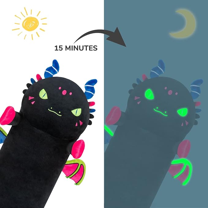 - Glow in the Dark:This cute dinosaur body plushie is not only a toy, it also gives off a warm glow in the dark. We offer you not only a pillow, but also the best lumbar body pillow when you sit on the sofa, as well as the most comfortable sleeping pillow.