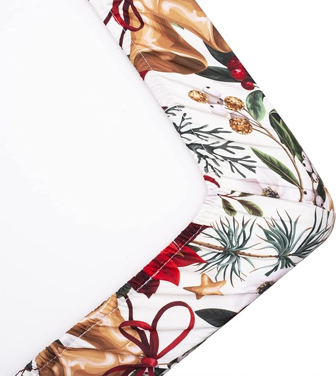 JISEN Baby Crib Sheet 1 Piece Portable Fitted Crib Sheet for Standard Crib and Toddler Mattresses Nursery Bed Decor for Boys Girls 28x52 Inch Christmas Flower