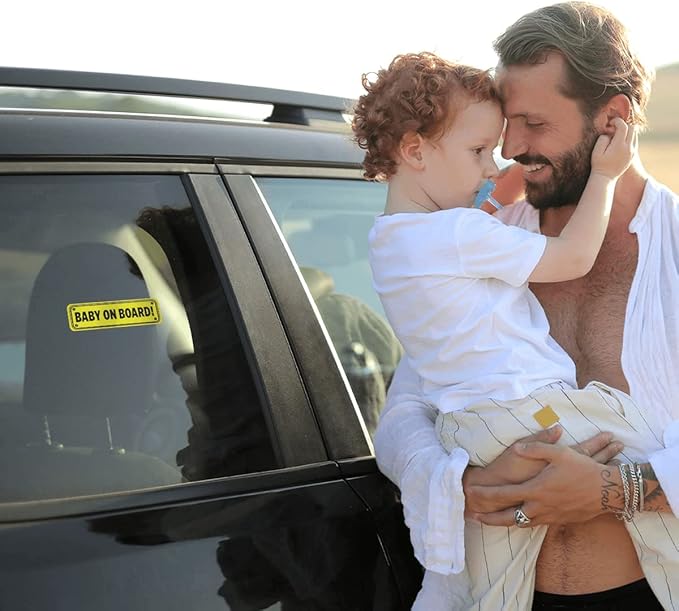 - BABY ON BOARD STICKERS - The waterproof and high-quality sticker has a strong adhesive that will not peel off your car window and is designed to withstand all weather conditions. Because it is applied to the outside of the vehicle, it can be used with tinted windows.