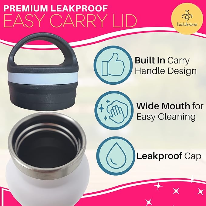 - Perfect Anywhere: The stainless steel flask style bottle will help you and your family stay hydrated. This bottle features a wide mouth opening for easy cleaning a drinking and a leak-proof easy twist off lid. The integrated handle makes this bottle convenient to carry to work, school, the gym or use at home. This reusable bottle is great for girls, boys, teens, and adults.