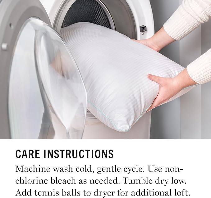 MARTHA STEWART Down Alternative Pillows Queen Size Set Of 2, Plush Cooling Pillow for Back, Stomach or Side Sleepers, Memory Foam-Like Fiber Fill, Dobby Stripe, 20" x 28", White