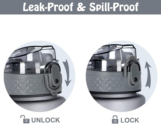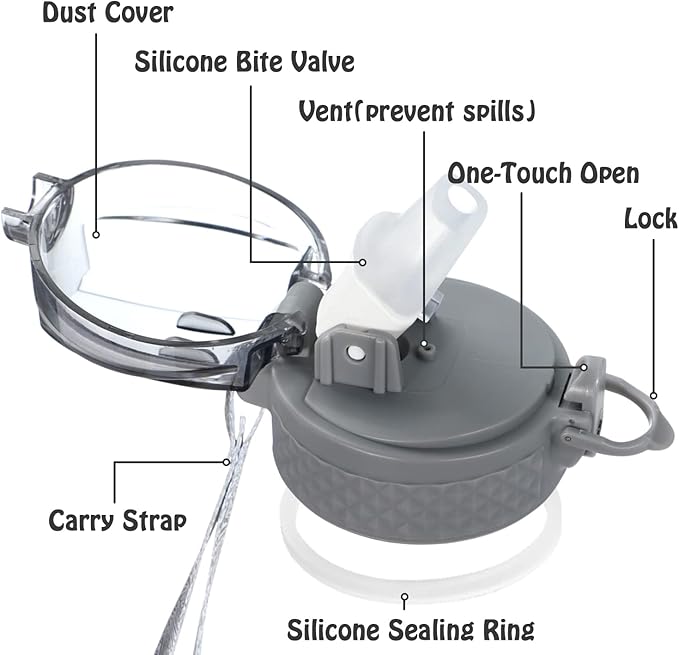 - LEAK-PROOF & DUSTPROOF: it is totally leak-proof so long as you have the tab in the locked position. So it won't accidentally open and leak while in backpack. Lid cover also keeps bite valve clean