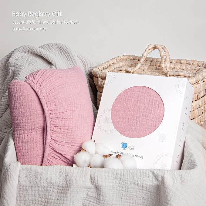 Lulu moon Muslin Crib Sheet Fitted Crib Mattress Sheet for Boys and Girls, 28"x 52" Carnation