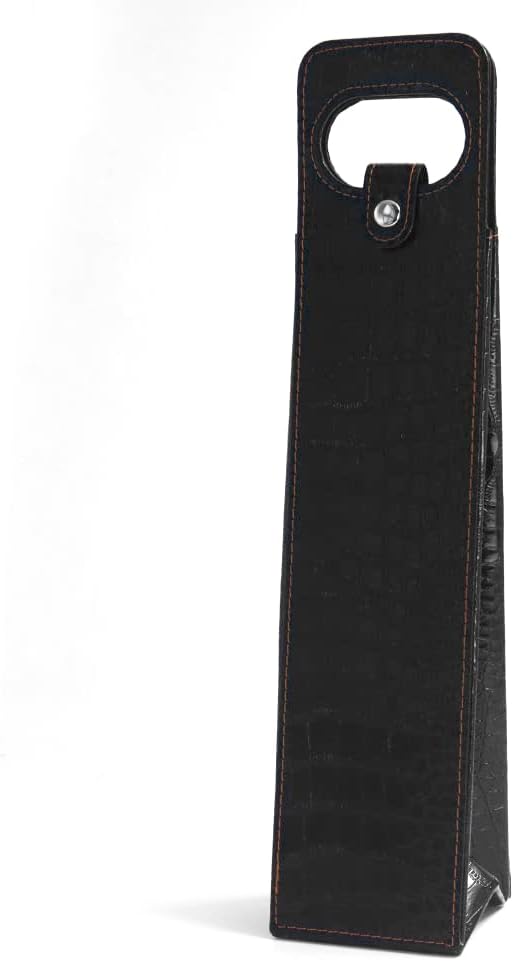 Single Bottle Wine Tote, Reusable Leather Wine Bag Tote, Single Bottle Wine Tote Bag, Crocodile Grain Wine Gift Bag for Picnic, Travel, Party, Birthday, Wedding, Restaurant (Black)