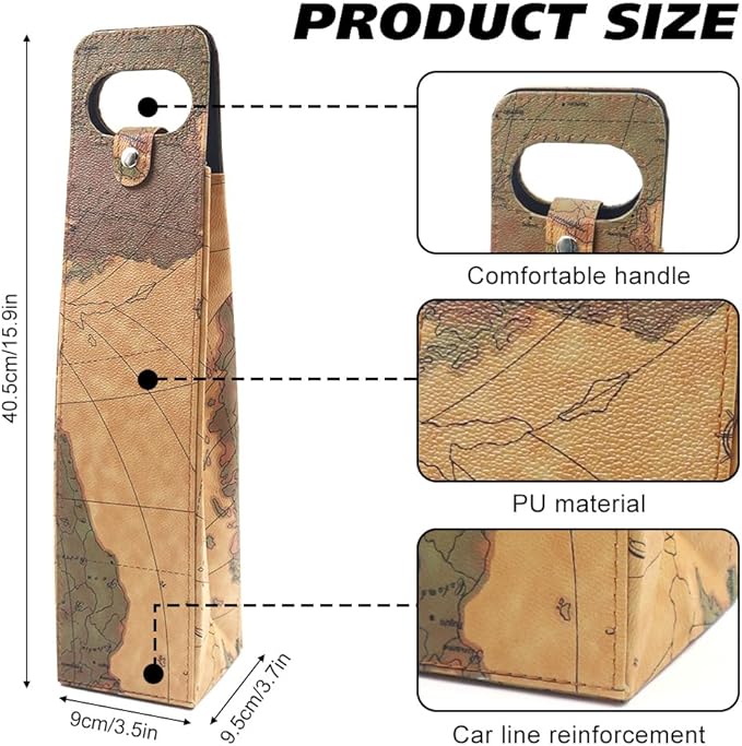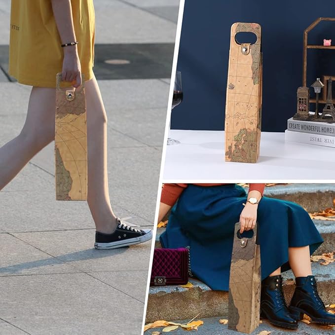 - 【Wine Gift Box】When you plan to give a champagne or wine to your friends, you really need a proper and portable gift box to protect the wine bottle from external collisions. Retro map pattern looks fancy and special, which will leave deep impression to your friends or customers.