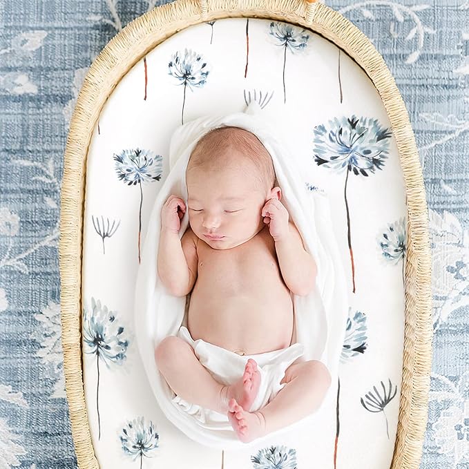 GRSSDER Stretchy Ultra Soft Bassinet Fitted Sheets 3 Pack, Universal Fitted for Bassinets Baby Cradle Moses Basket Oval Rectangle Mattress Safe and Snug, Pretty Bassinet Sheet for Baby, Navy Blue