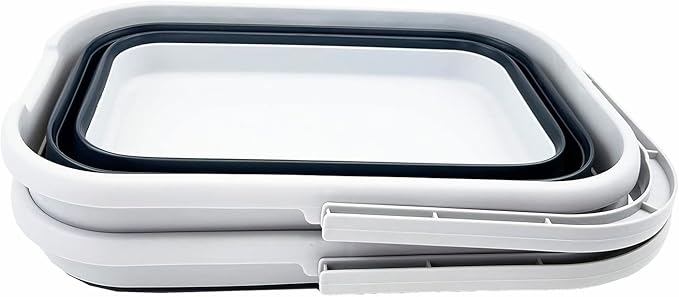 SAMMART 12L (3.1 gallon) Collapsible Rectangular Handy Basket/Bucket/Multiuse Foldable Water Pail for Camping, Fishing (Slate Grey (Set of 2))