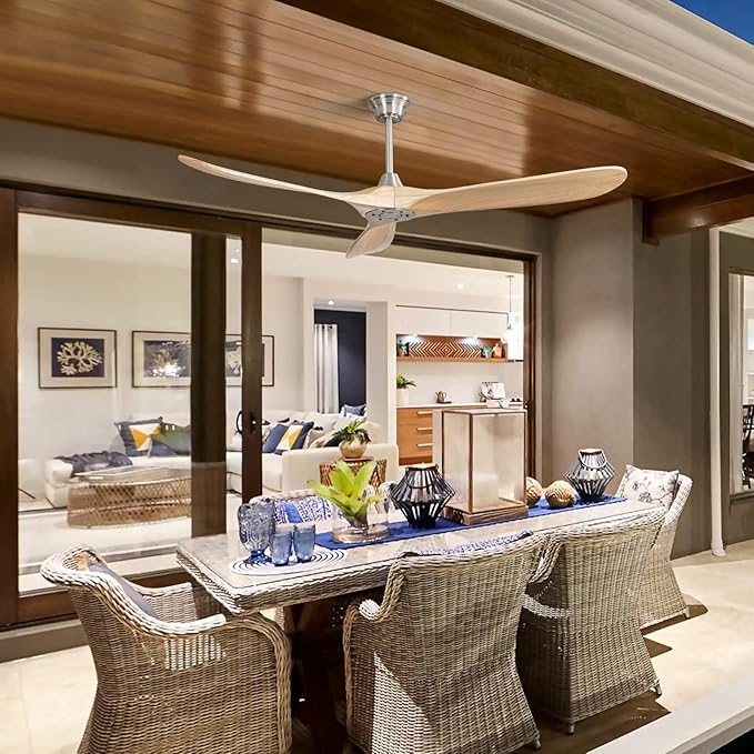 Sofucor 60" Ceiling Fan no Light and Remote Control, Outdoor Ceiling Fan Without Light, 3 Blade Ceiling Fan with Quiet Energy Saving Motor, 6 Speeds, Light Wood Grain