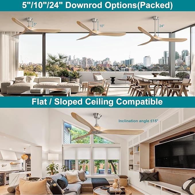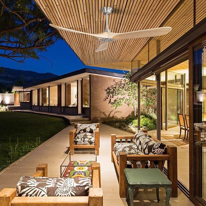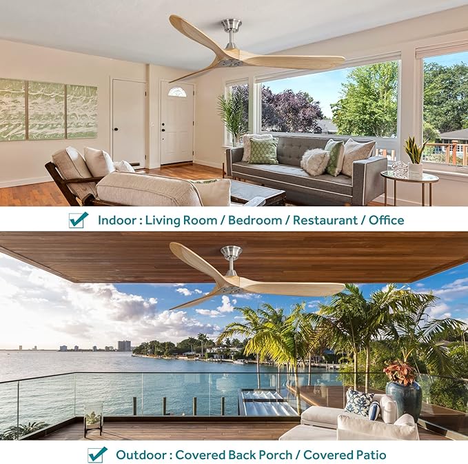- Indoor & Outdoor Ceiling Fan: The propeller ceiling fan combines with silver finish and light wood grain blades, moisture-proof level, great for any indoor and covered outdoor space, living room, bedroom, child room, covered patio and covered porch.