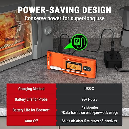 - Booster with Standalone Display: Check the ambient and meat temperatures on the Booster display without the Smart App; Backlight LCD allows you to cook in dim-light condition, making checking your food easier than ever