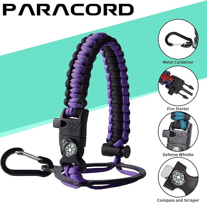 - UNIQUE PARACORD—Perfect Accessories: bright color paracord matches the flask water bottle to give you a youthful vibe while adding a personal style. It comes with a compass, safety loop, metal carabiner, flint, igniter, and whistle to become your survival tool for your wild adventures