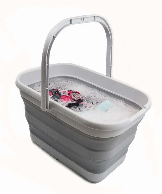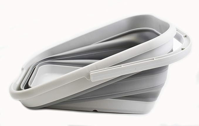 SAMMART 12L (3.1 gallon) Collapsible Rectangular Handy Bucket/Multiuse Foldable Water Pail for Camping, Fishing (Grey (Set of 2))
