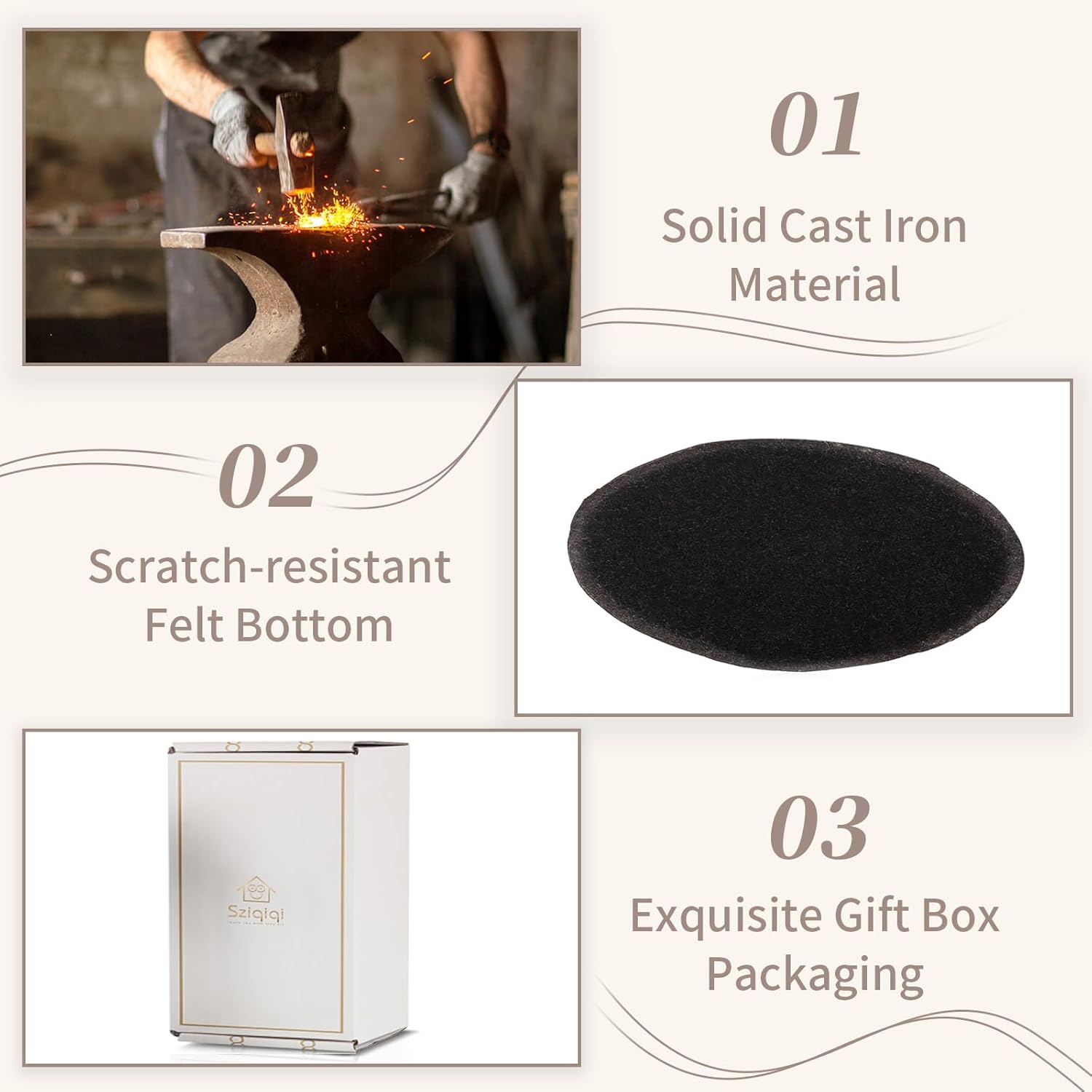 - CAST IRON STATUE ORNAMENT - Our personalised couple figurines are handcrafted from iron material, solid sturdy and has a felt base so it won't scratch the tabletop surface. Unlike most wedding / anniversary gifts it can be used for years.